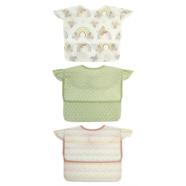 Parents Choice Baby Girl Ruffle Sleeve Bibs, 3-Pack