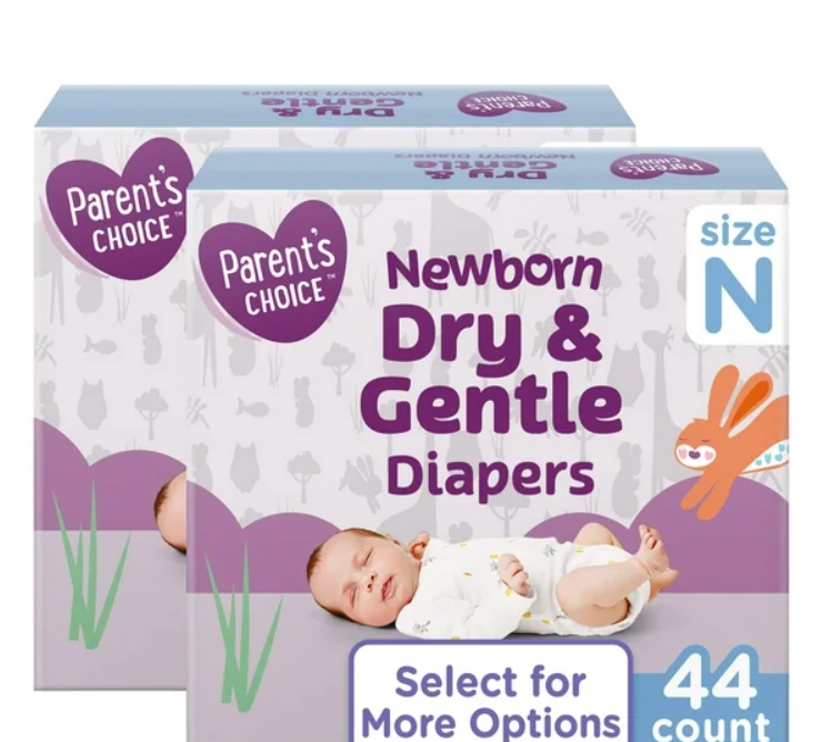 • Parent’s Choice Dry & Gentle Diapers, Newborn, 44 Count (Select for More Options)